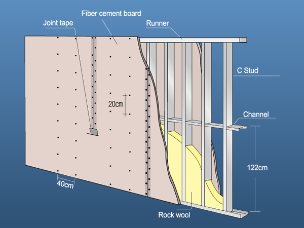 輕隔間並非載重牆,安裝時須與結構體留縫間隔,在牆上釘吊掛物件,應依物件重量選用螺絲釘固定或獨立支撐固定。隔間牆由矽酸鈣板、輕鋼架或木角材、填充棉或其他配件構成,可達到防火、隔音、保溫等功能。